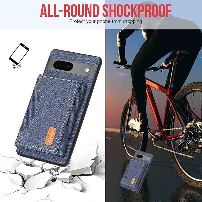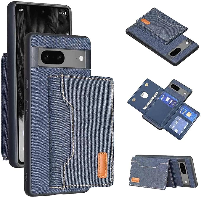 【Anrek】Google Pixel 8 Pro docomo 用 デニムケース カード収納 縄掛 手帳型 ケース (ダークブルー) グーグル ピクセル8プロ 背面カバー 両用 磁石吸着 名刺入れ 分離式 取り外し自由 車載 耐衝撃 財布合一 ケース グーグルpixel8pro BLUE
