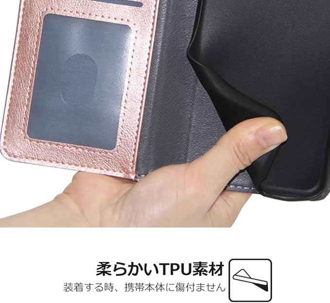 【耐衝撃性】耐熱性と柔軟性を誇るPUレザーから作られ、滑りにくい、指紋・油汚れなどもつきにくく、手帳型ならではの全面保護機能で裏面はもちろん、画面もしっかりガードします。