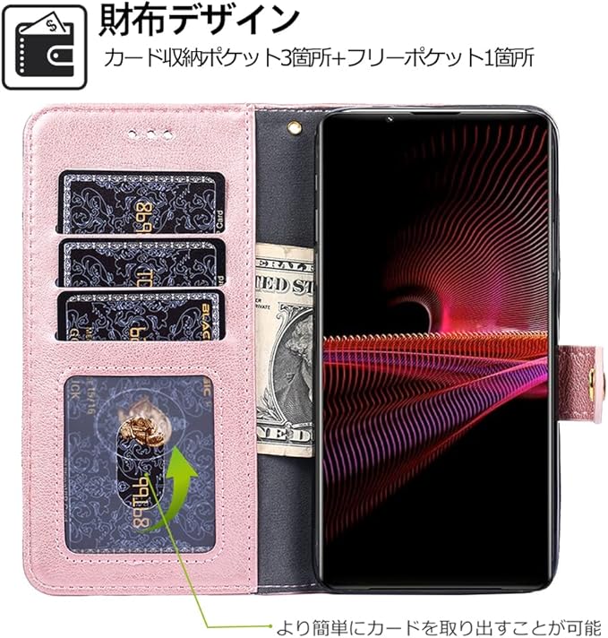 【上質な素材】ユニセックス 美しくて個性的な手帳型スマホケース!細かいところまで丁寧に作られています。放熱性と耐衝撃性に優れる高品質TPUケース。柔らかくて快適、高機能性、滑りにくく、ストラップ付きなどたくさん特徴持ち、日常使用に非常に便利で、持ち運びもラクラク。