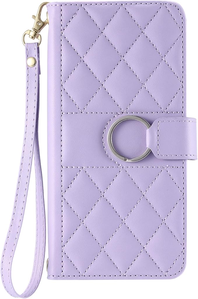 Pixel 7A ケース 手帳型 pixel 7財布携帯カバー ピクセル7A ファッション コンパクトかわいいレディースチェック柄カバー pixel 7A斜め掛けストラップ付き耐摩耗リングバックル ケース手帳 Pixel 7A 6.1inch 小香風 カード収納横スタンド機能汚れに強い (パープル)
