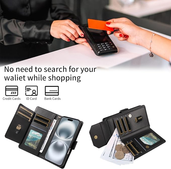 【5色選べる/完全財布代替】Google Pixel 9 Pixel 9 Pro ケース 手帳型 ピクセル 9/9Pro 財布型 大容量11カード収納 側面マグネット式 ストラップ付き スタンド機能付属( Pixel 9 /9 Pro兼用、ブラック)