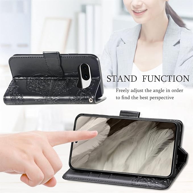 Google pixel 9/Pixel 9 Pro ケース 手帳型 グーグルピクセル9 ケース 財布型 カード収納 かわいい 蝶々 フラワー柄 シンプル おしゃれ ドコモ Google pixel9 手帳型ケース 良質 革 レザー マグネット式 Pixel9 Pro 携帯ケース 横置きスタンド機能付き ピクセル9 プロ スマートフォンケース 耐衝撃 ストラップホール付 (ブルー)
