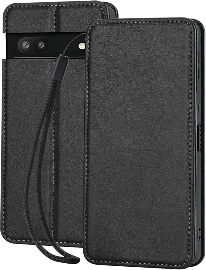 ケース 適用 Pixel 8A 手帳型 ピクセル8A レザーケース カード収納 内蔵マグネット式(携帯ストラップ付き、ガラスフィルム付き)ブラック