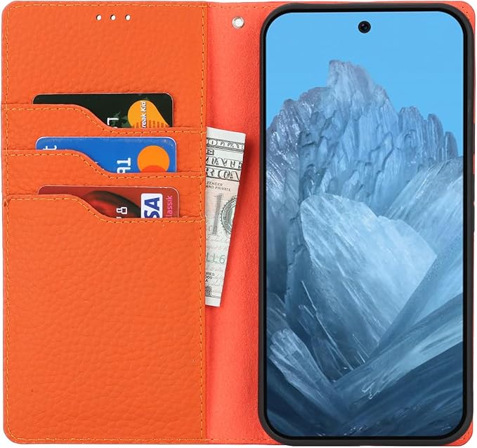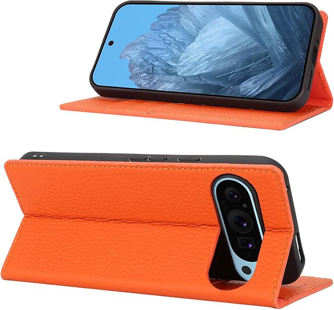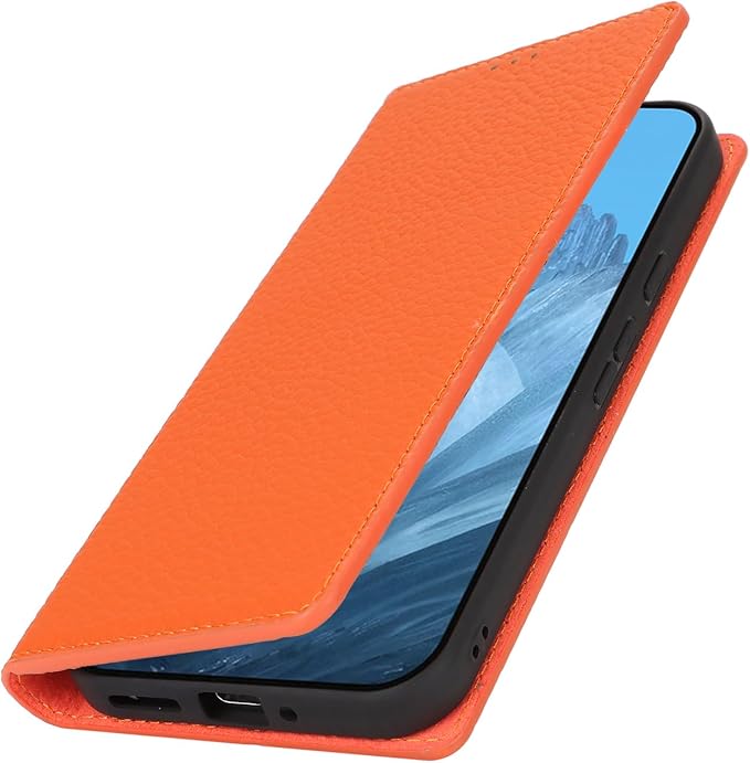 Eastwave for Google Pixel 9Pro XL ケース 本革 牛革 for pixel 9ProXL ケース for pixel9proxl手帳型 カバー Case カバー 手帳 本革 柔らかい 本皮 スプラットホール付き スプラット同梱 内蔵マグネット オレンジ