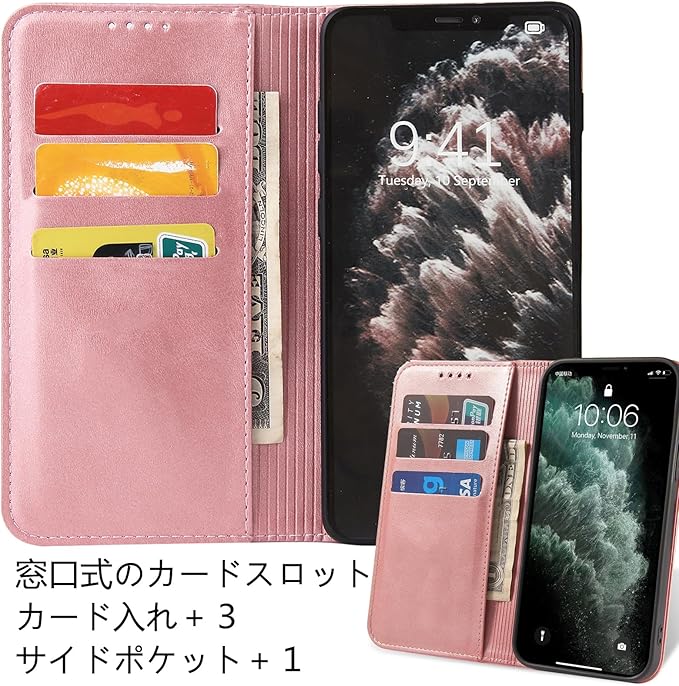 【素材】:鮮やかな色合いを避けて落ち着いたPUレザーを採用し、汚れにくくて触感が優しい素材です。インナーケースは柔軟なTPUホルダーです、装着が簡単で本体を傷つける心配はありません。衝撃吸収機能も良くて、しっかりと端末を守り抜きます。