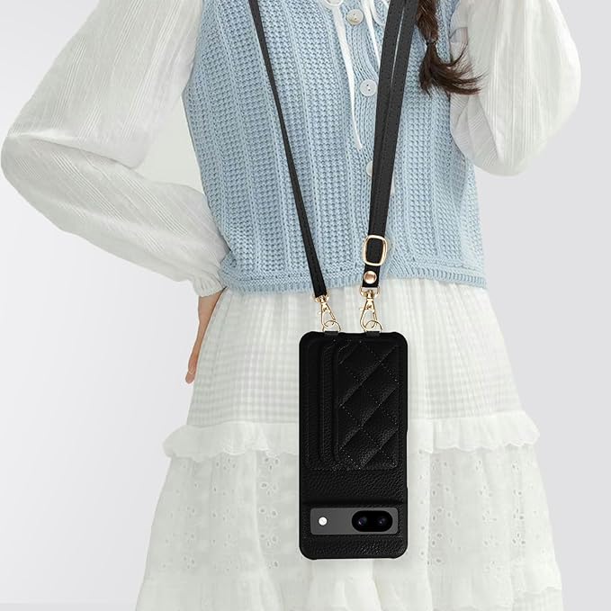 Google Pixel 8a 対応 ケース 高級PUレザー 上質な手触りPixel 8a ケース ピクセル8aスマホケース 斜めかけ 衝撃吸収 耐衝撃 便利 女性 カード収納 汗、指紋や擦り傷防止 手首/肩掛けストラップ付き (長さ調整可能) 可愛い 人気 レディース シュリンクレザー プレゼントPixel 8a 6.1インチ (附ストラップ) ブラック