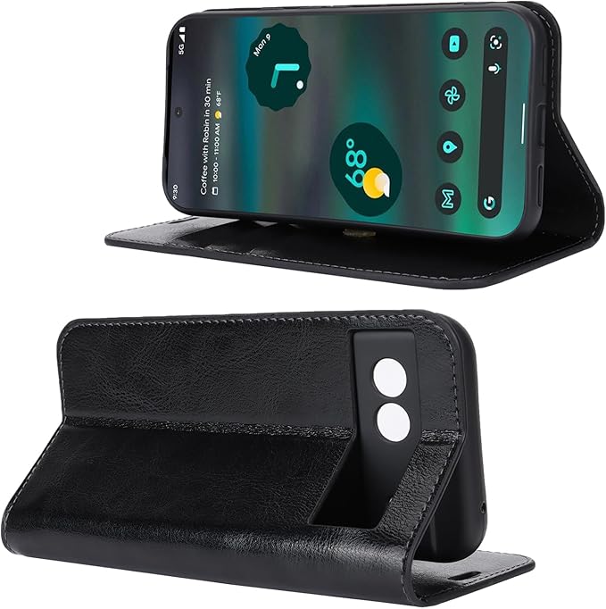 Eastwave for Pixel 8A ケース for Google Pixel8A 手帳型 カバー Phone Case 財布型 収納ポケット 牛革製品 ポケット収納付き 横置きスタンド機能 4色 ブラック