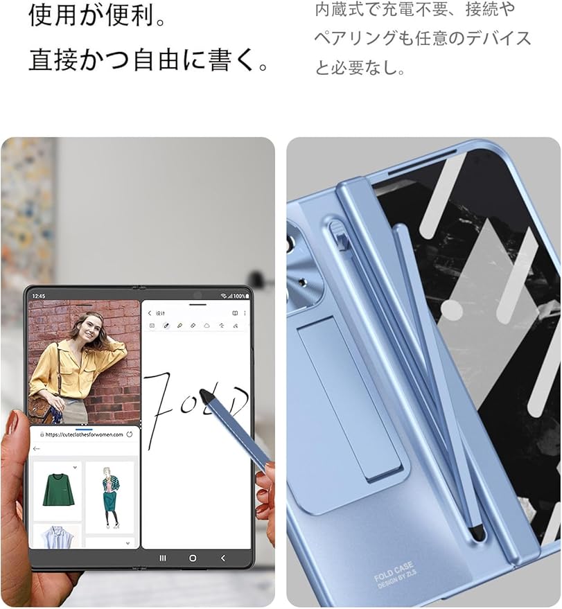 【ペン贈り|ペン内蔵収納】対応Pixel 9 Pro Fold ケース ペン付き,側面カバーにはペン収納スロットがデザインされており、ペンが付属しています。タッチペンを使用して画面上で作業したり、テキストを入力したり、使用しないときは収納スロットに挿入したりできます。 統合されたペンスロットデザイン。[押して排出] スタイラス,操作が簡単で便利です。