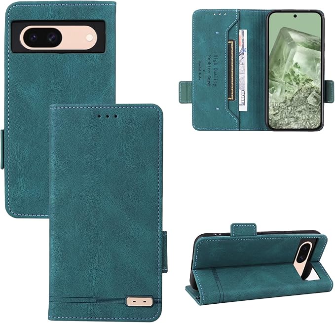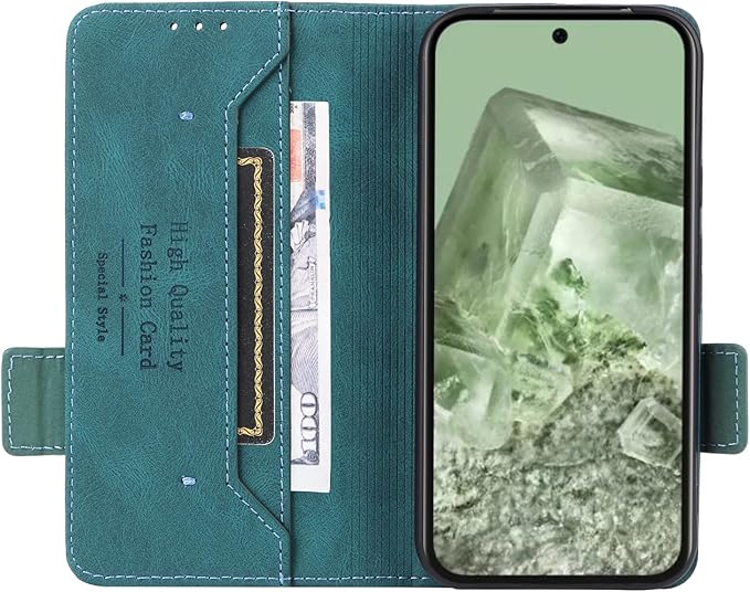Pixel 8a ケース 手帳型 おしゃれ ピクセル8aレザー 耐衝撃 レザー 保護 カバー Pixel 8aくせるスマホ ケース カード収納あり 使う便利性 ピクセル8a カバー カード収納 スタンド機能 ぐーぐるぴくせる Pixel 8a ケース 横置きスタンド機能 二つ折り 手作り 大人っぽい 落ち着くデザイン (グリーン, Pixel 8A 6.1)