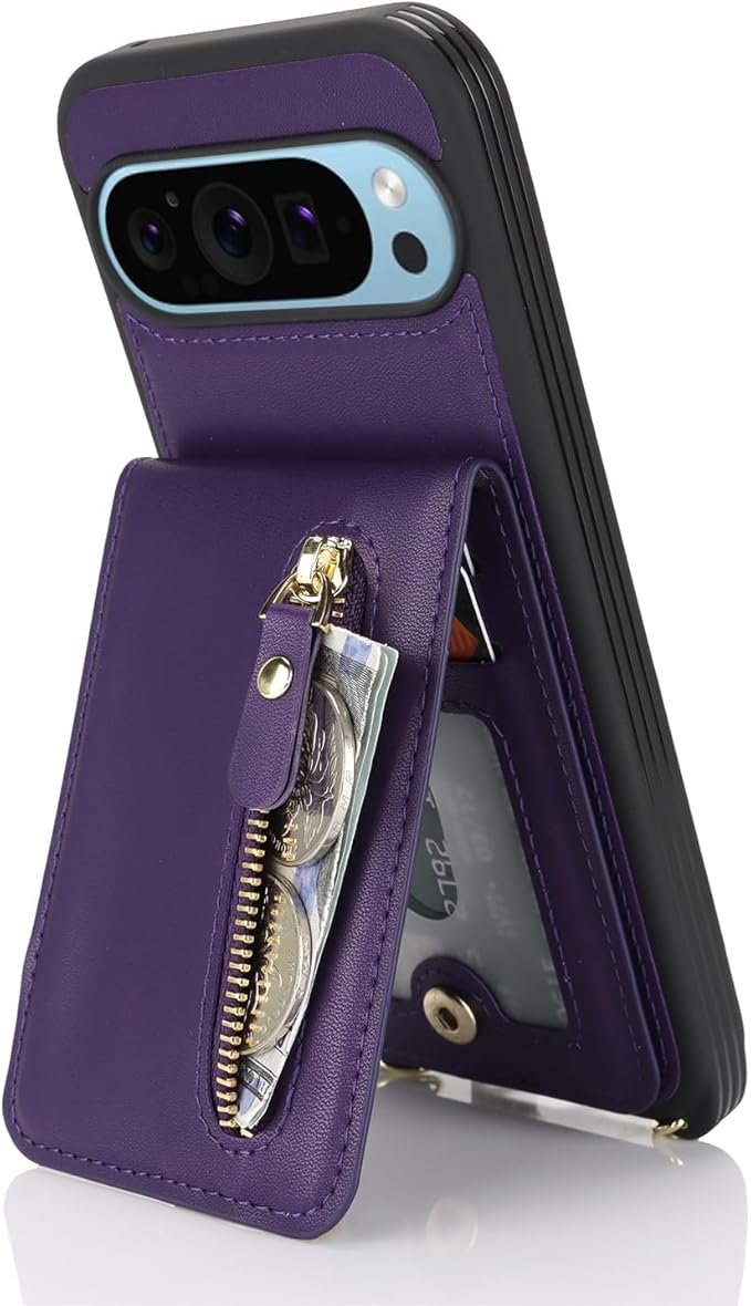 Google Pixel 9 Pro XL ケース ショルダー ストラップ付き ショルダーケース 背面フリップ 上下開 手帳型 Google用 pixel9proXL docomo au SIMフリー softbank 全対応 グーグル ピクセル9プロXL カバー case 適用 iCoverCase カード収納 縦置き スタンド 肩がけ 首掛け 斜め掛け 携帯カバー パープル