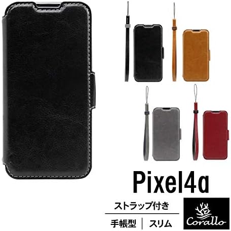 【Corallo】 Pixel4a 対応 ケース 手帳型 ストラップ 付き マグネット 式 ベルト 薄型 スリム ヴィンテージ 手帳 レザー カバー カード 収納 ストラップホール 付 スマホケース [ Google Pixel 4a グーグル ピクセル4a 対応 ] NU Classic レッド ブラック