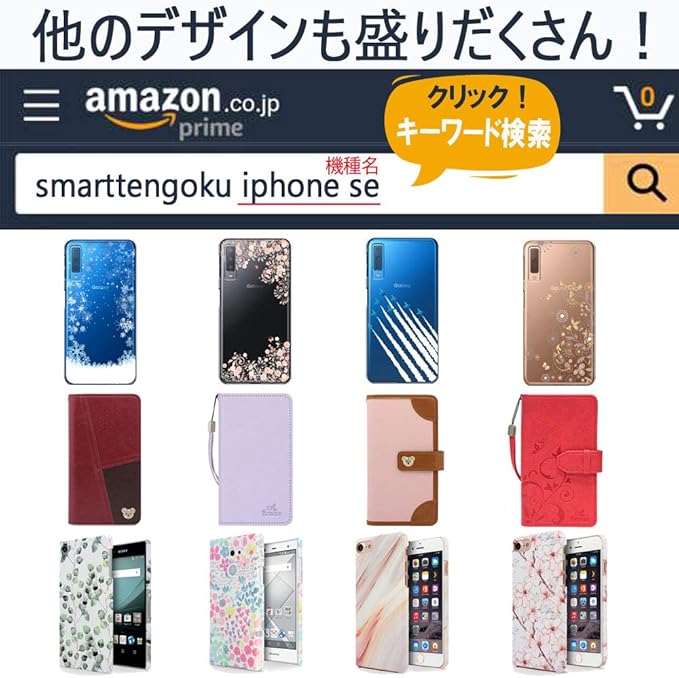 この機種の全デザインを見る:検索バーに (例) 「 smarttengoku PIX7A 」 と記入後GO。