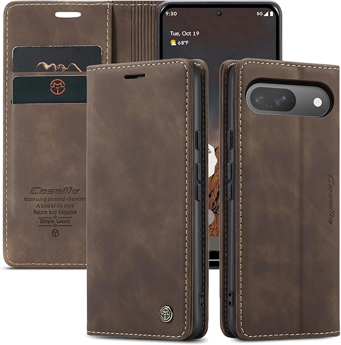 【AssassinCat】ケースPixel 9/Pixel10適合ケース 手帳型 上質なレトロPUレザー 対応グーグルピクセル 9/9pro向け 携帯カバー 薄型 マグネット式 pixel 9Proために カバー スタンド機能 ピクセル 9proの代替品 肌感レザー カード収納 お札入れ 耐衝撃 耐汚れ 全面保護 財布型 シンプル ビジネス風(ブラウン)