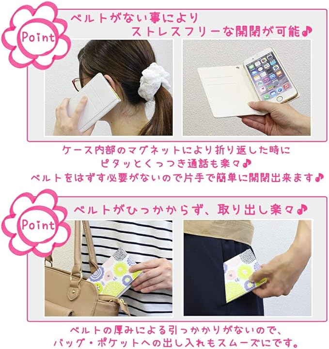 手帳ケースからスマホをはずすことなく写真撮影できて便利です。