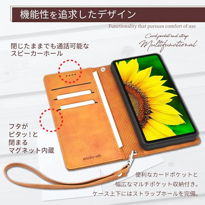 【便利な機能】 蓋は、マグネット仕様でピタッと留まります。 3つのカードポケットと横長サイズのマルチポケットがあるので、カードなどを収納することが出来ます。また、スタンド機能もある為、動画視聴も快適です。