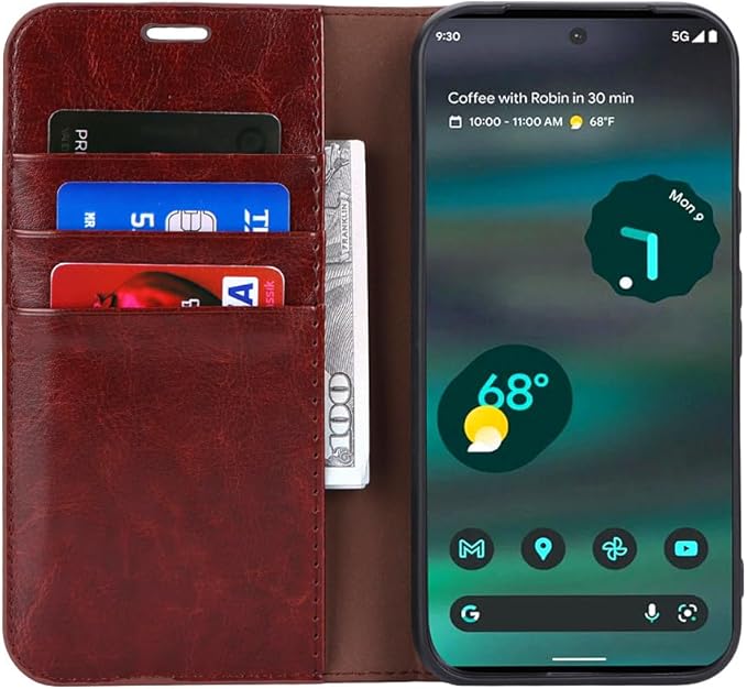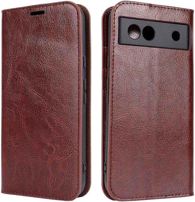 Pixel 8a 用 ケース 本革 手帳型 スマホケース マグネット無し 磁気不良防止 カード収納3枚 カバー ピクセル 8a 対応 wbao (ダークブラウン)