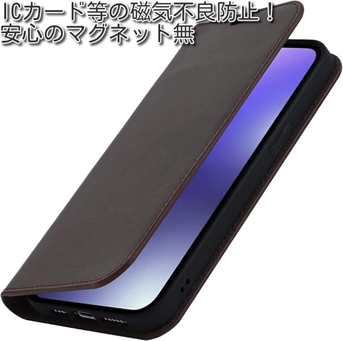 磁気不良防止の手帳型ケース。ICカード等の磁気不良防止のためマグネットレスの手帳型カバーです。