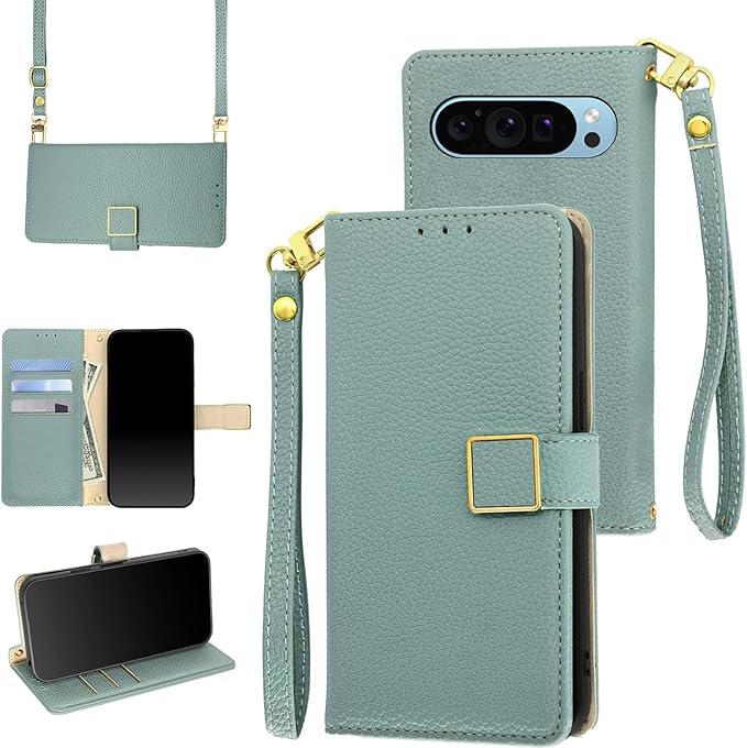 for Google Pixel 10 Pro XL ケース 手帳型 ショルダー for グーグル ピクセル10プロXL 財布型 カバー ストラップ長+短2本付き 肩掛け 斜めがけ 女性 おしゃれ ロングストラップ カード収納 横置き 上質な手触り 耐汚れ気質 肌感レザー 防指紋 耐久性 贈り物 ブルー