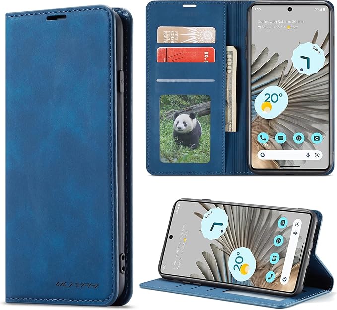 QLTYPRI との互換性あり Pixel 7a ケース 手帳型 ピクセル 7a スマホケース 高級PUレザー 皮革 TPU バンパー カード収納 スタンド機能 内蔵マグネット 耐衝撃 耐摩擦 上品 全面保護 人気 おしゃれ 財布型 カバー - ブルー