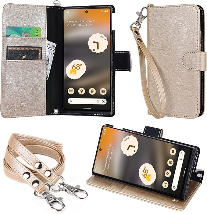 wisers Pixel 6a ケース カバー 手帳型 [ ストラップ 2種付 ] Google グーグル au エーユー SoftBank ソフトバンク スマートフォン スマホ ケース カバー [2022 年 新型] ゴールド