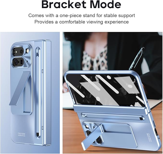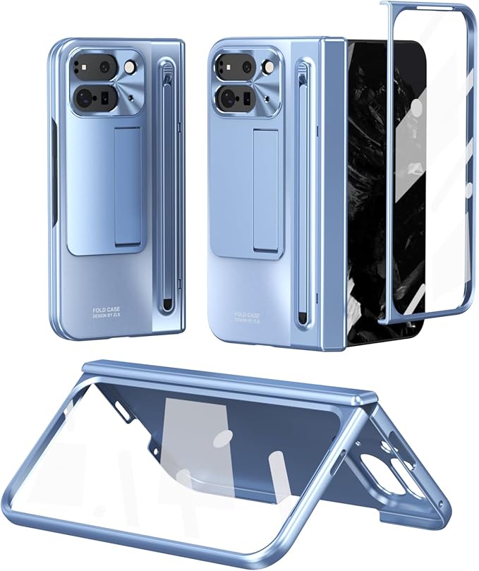 ケース 手帳型 GG Pxl 9 Pro Fold 携帯全面保護+強化ガラスフィルム+隠しスタンド機能 ヒンジ保護 メタルレンズカバー 薄型 軽量 きんぞくラッカ+ペン ワイヤレス充電サポート 携帯 折り畳み QI 人気 かわいい おしゃれ キラキラ 二層構造 フリップ 財布型 面白い 取り外し 耐衝撃 - 青