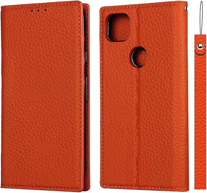 Google pixel 4a ケース pixel4a ケース ピクセル 4a カバー グーグル pixel4a カバー グーグルpixel4a 対応 スマホケース ピクセル4a 手帳型 カバー 財布 ケース case 【iCoverCase】 内蔵マグネット ベルトなし スマホケース カード入れ付き スタンド機能 本革 柔らかい 本皮 ライチ模様 スプラット同梱 オレンジ