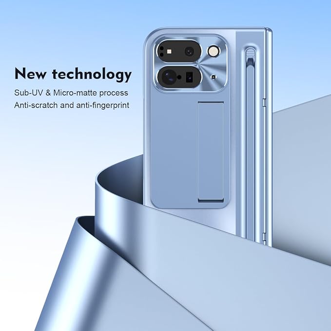ケース 手帳型 GG Pxl 9 Pro Fold 携帯全面保護+強化ガラスフィルム+隠しブラケット機能 メタルレンズカバー ヒンジ保護 薄型 軽量 きんぞくラッカ+ペン 携帯 折り畳み QI ワイヤレス充電サポート 人気 かわいい、おしゃれ キラキラ 二層構造 フリップ 財布型 面白い 取り外し 耐衝撃 - 青
