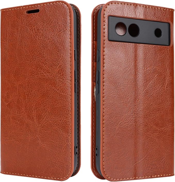 Eastwave 手帳型 財布型 カバー for 用の Google Pixel 8A と互換性のある 収納ポケット 牛革製品 ポケット収納付き 横置きスタンド機能 4色 ライトブラウン