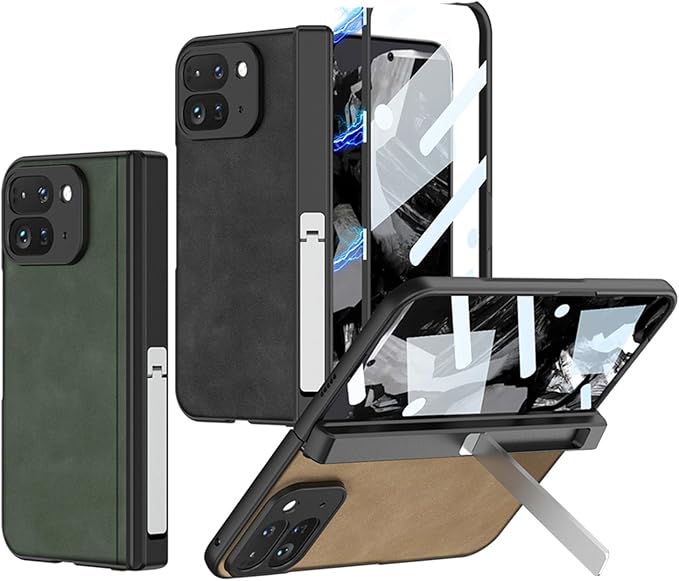 GG Pxl 9 Pro Foldのケース 薄型 軽量 ヒンジ保護 金属スタンド機能 レイシ模様のレザー 強化ガラス保護フィルム 折り畳み 全面保護 レンズ保護 ワイヤレス充電滑り防止 カバー 指紋防止 スマホ ソフト かわいい 人気 耐衝撃 フレーム 可愛い 面白い おしゃれ キャラクター キラキラ 手帳型 Beautycatcher - 緑