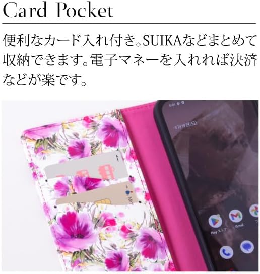 ボタニカル柄で華やかに表の曲線から覗く上品花柄ケース ハンドストラップ、カードポケット、機能も充実したGooglePixel8a専用手帳型ケースです。