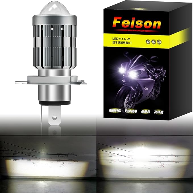 Feison(フェイソン) 新型H4 HS1 バイク用 プロジェクター LED ヘッドライト HI/LO切替 15W 4000LM 一体型 ledヘッドライト バルブ 6000k ホワイト 高輝度 新車検対応 無極性 レンズ付き 冷却ファン搭載 AC&DC 12V兼用 純正交換用 日本語説明書 1個入 (H4 LED ヘッドライト【プロジェクター式】)