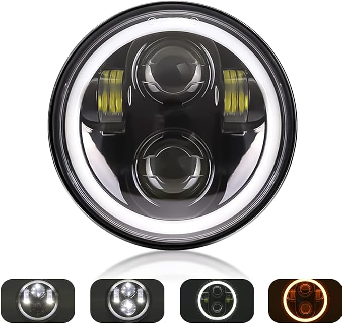 5.75インチ Harley 用 ヘッドライト Hi Lo 12/24V兼用イカリング付き&ウインカー機能付き