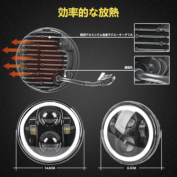 【保証】5.75オートバイのヘッドライトは、 耐水性および耐衝撃性、50,000時間以上寿命、一年間保証。