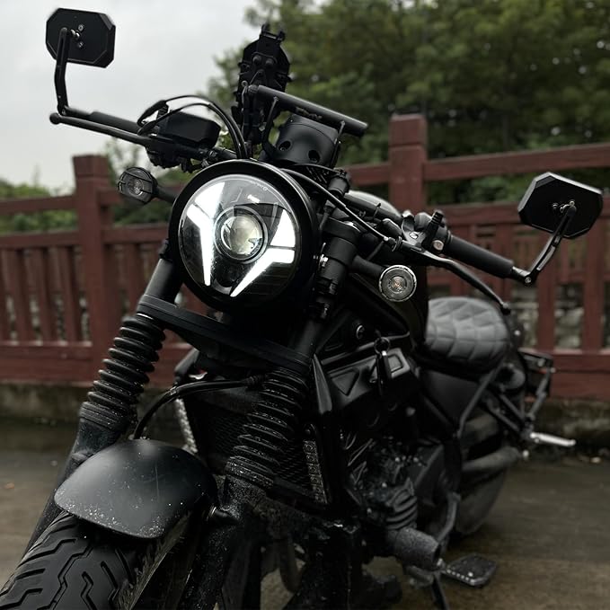 互換性: ユニバーサルラウンドオートバイヘッドライトアセンブリは7インチLEDヘッドライトを備えたCB400/ CB1300/ CB250/ CB600F/ CB919 Hornet/ Buell Blast、カスタムチョッパー、ボバー、カフェレーサーなどと互換性があります。