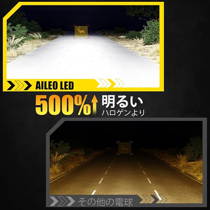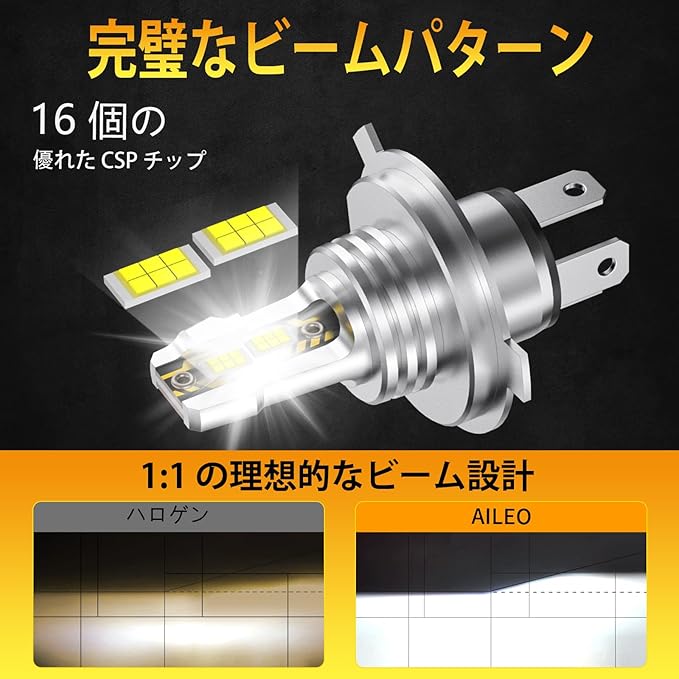 【ハロゲン電球の500%以上明るい】 高輝度3570CSPチップを搭載したAILEO H4 LED ヘッドライト バルブは、6500Kクールホワイトで最大16,000ルーメンを実現。従来のハロゲンより500%明るく、夜間走行や危険察知を大幅に向上させ、バイクや車のハイビーム用としても最適です。