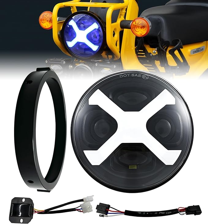 クロスカブCC110専用 5.75インチLEDヘッドライト X-スタイル ブルーDRL ヘッドライト固定用リング 専用アダプターケーブル バラスト付き 2022以後JA60に適用