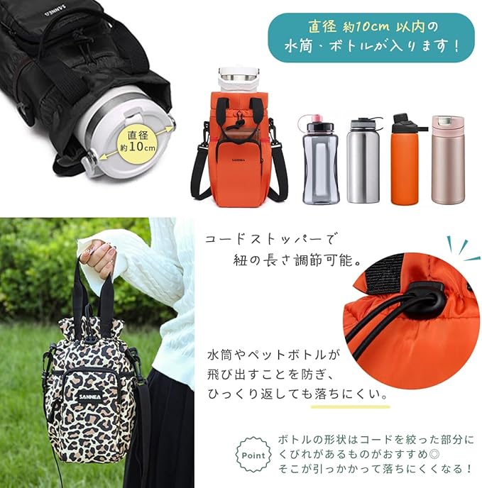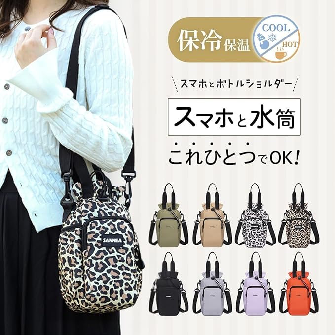 [mitt rom] スマホショルダー ボトルホルダー 保冷 保温 水筒カバー 軽量 撥水 斜めがけ 小さめ 子供 キッズ 大人 通園 公園 遠足 フェス 500ml~1000ml対応