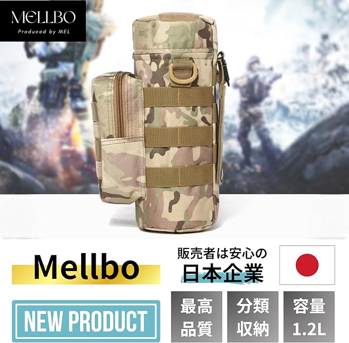 Mellbo 水筒ポーチ 水筒カバー ボトルポーチ ボトルホルダー ミリタリー タクティカル アウトドア 最大1.2L 3WAY ウエスト ショルダー 吊り下げ 排水穴付き スリム 大容量