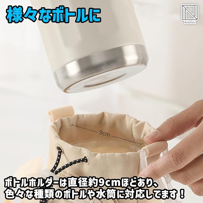 【様々なボトルに】ボトルホルダーは直径約9cmほどあり、色々な種類のボトルや水筒に対応してます!