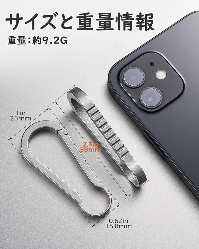 チタン キーホルダー : 当社のカラビナフックは高品質のチタン合金で作られています。チタン合金は軽くて丈夫なだけでなく、耐食性にも優れており、汗や海水などの浸食を受けても錆びにくいです。この素材は特に屋外での使用に適しており、さまざまな過酷な環境条件に耐えることができます。