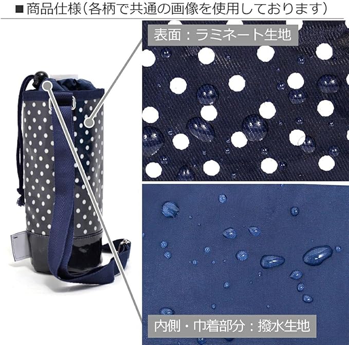 表面は水をしっかり弾くビニールコーティング。本体内側・入口部分は水滴に強い撥水生地です。