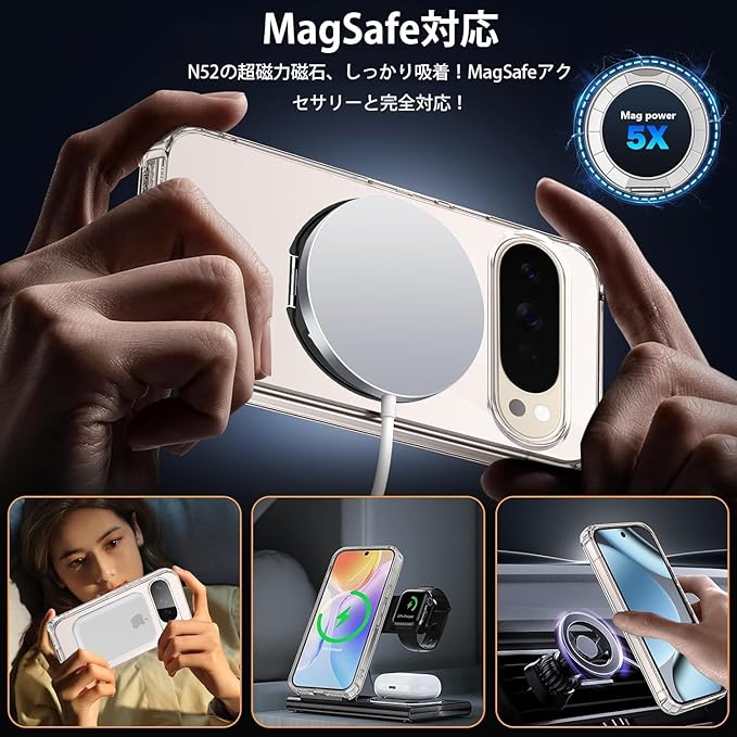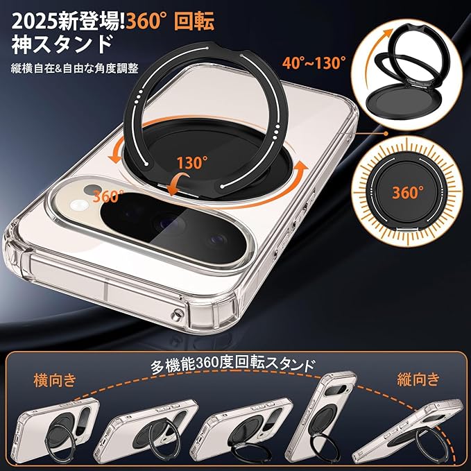対応 Google Pixel 10 / 10 Pro ケースリング 耐衝撃 360 回転 スタンド機能 縦横両対応 米軍MIL規格 TPU ソフト 透明 シリコン 車載ホルダー対応 滑り止め 落下防止 全面保護カバー (クリア)