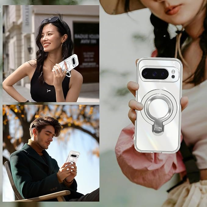 Google Pixel 10 Pro XL ケース クリア リング付き 縦横両対応 耐衝撃 ピクセル10 Pro XL 透明 軽量 薄型 スタンド機能 保護カバー