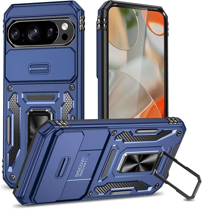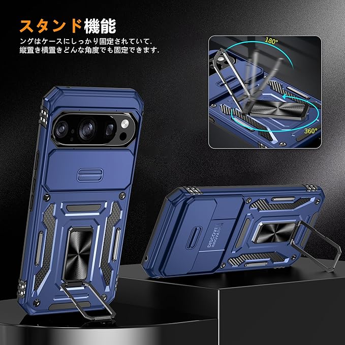 WOYSOBA 対応 Google Pixel 10 Pro XL 用のケース リング付き 耐衝撃 衝撃吸収 tpu 薄型 擦り傷防止 薄型 シリコン スタンド機能 車載ホルダー対応 二重構造 PC バンパー ピクセル 10 プロ XL スマホケース 360 回転 おしゃれ 人気 携帯カバー(青)Q46-KJZH-P10PXL-QIN