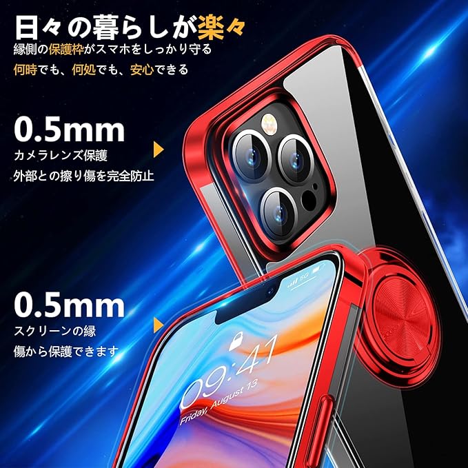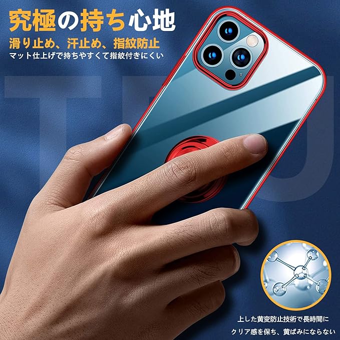 Mnunjiajia 対応 Google Pixel 10 Pro XL 用 ケース リング クリア 透明 TPU メッキ 加工 耐衝撃 車載ホルダー対応 スタンド機能 防塵 薄型 軽量 落下防止 一体型 変形防止 全面保護カバー ピクセル 10 プロ XL カバー 赤 MJJ-1052-13-02