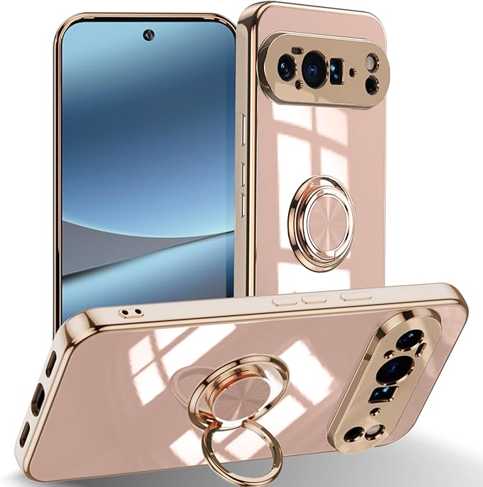 LuFiYa Google Pixel 10 Pro XL 5G 用 ケース リング付き カバー TPU素材 スタンド機 軽量 耐衝撃 薄い 擦り傷防止 落下防止 車載ホルダー 360 回転 スマホケース Google Pixel 10 Pro XL 5G 対応 (ピンク)