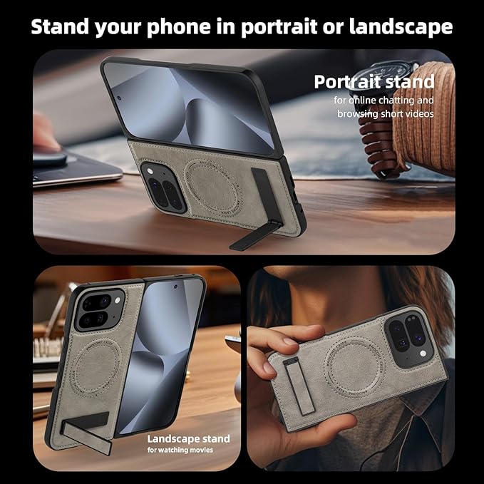 本製品はGoogle Pixel 10 Pro Fold専用設計の手帳型ケースです。TPU内層と荔枝紋レザー外層の複合構造が360度全方位保護を実現し、背面の折り畳み式金属スタンドが縦向き・横向き視聴角度を固定。カメラ周辺の微隆起設計が損傷リスクを軽減し、内蔵磁気構造が全ワイヤレス充電器と互換。立体皮革紋様が質感を演出すると共に、軽量設計により携帯快適性を最適化します。