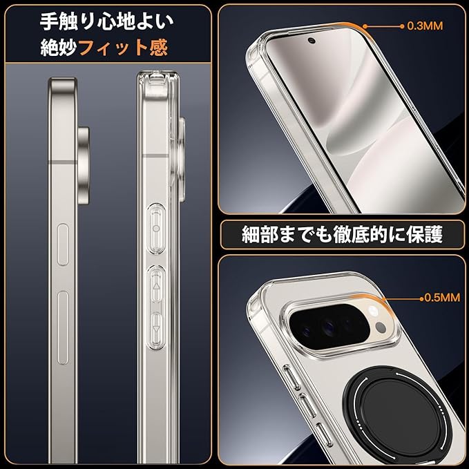 対応 Google Pixel 10/ Google Pixel 10 Pro ケースリング 360 回転スタンド機能 縦横両対応 Google ピクセル 10 / 10プロ 透明 TPU 耐衝撃 指紋防止 車載ホルダー対応 防塵 一体型 人気 携帯カバー(クリア)