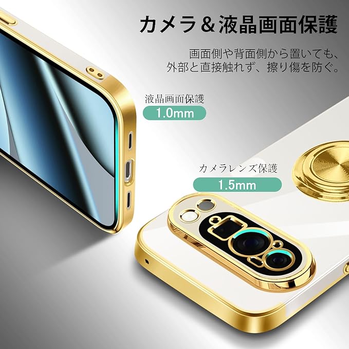 【スタンド機能】後ろに付いているフィンガーリングはスタンド機能はもちろん、滑りにくくて持ちやすい、安定的なグリップが特徴です。リングはケースにしっかり固定されていて。360度回転可能、180角度調節可能、携帯電話でビデオを見るのはとても便利です