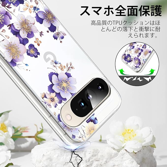 【保護性と美しさを兼備】優れたPCとTPU素材を使用し、ピクセル10/ピクセル10proケース全体の作りはしっかりとでき上がっており、スマホを不意に落としても衝撃と損傷からスマホを保護できます。印刷もIMD技術により色彩が更に鮮やかに見え、透明で薄型のスタイルプラス花の柄はおしゃれで美しいです。